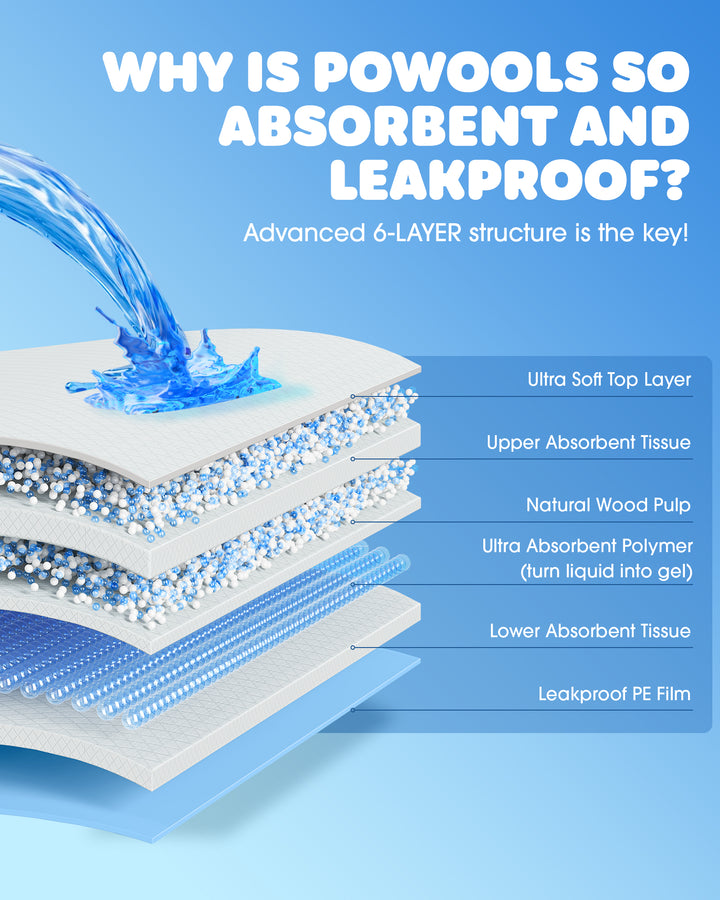 - SUPER ABSORBENT 6-LAYER PROTECTION: Powools puppy pads pet training pads feature an ultra-absorbent 6-layer material that instantly turns liquid into gel on contact. This innovative polymer locks in moisture and prevents leaks, messes, and odors. Your floors stay clean and dry.